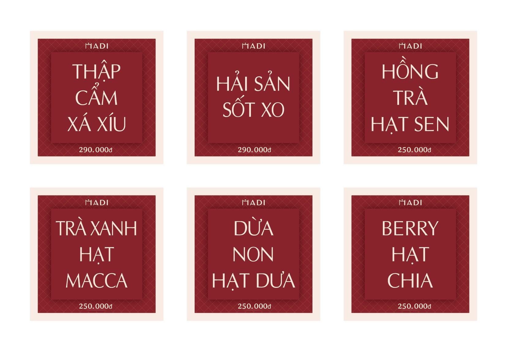 Mùa Trung Thu năm nay, MaDi thân gửi đến bạn và gia đình 6 vị bánh thượng hạng được MaDi tuyển chọn tỉ mỉ từ nguyên liệu đến những tạo hình độc đáo và ấn tượng: