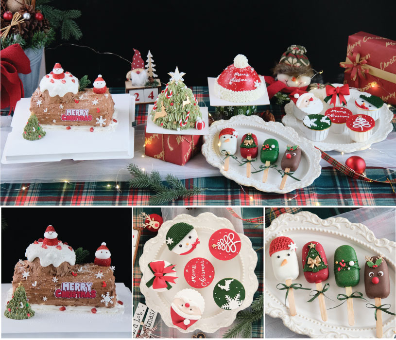 Bánh Cây thông Noel, Bánh khúc cây truyền thống, bánh hình ông già Noel, bánh nhà gừng, set bánh cakepop đáng yêu và set cupcake với nhiều phong cách trang trí khác nhau, tạo nên một bộ sưu tập bánh Noel đẹp dành cho bữa tiệc ấm áp bên gia đình của bạn.
