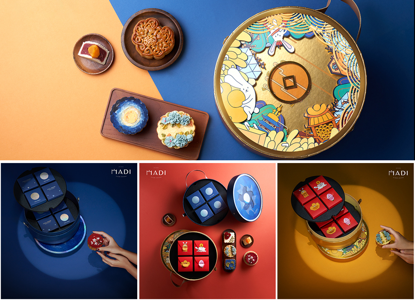 Set bánh đầu tiên của MaDi trong mùa trăng năm nay là TRÒN, gồm 8 bánh 125gr 1 trứng muối ( 2 nhân thập cẩm và 6 nhân ngọt), 4 bánh phối hoa và 4 bánh truyền thống: