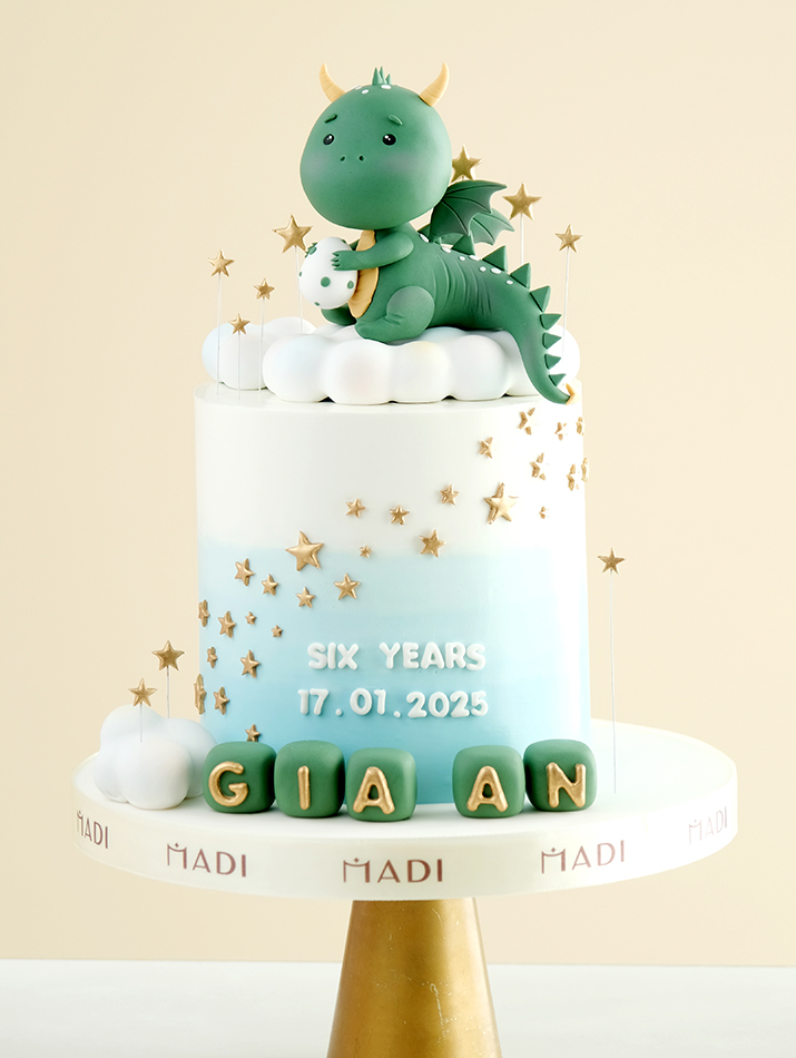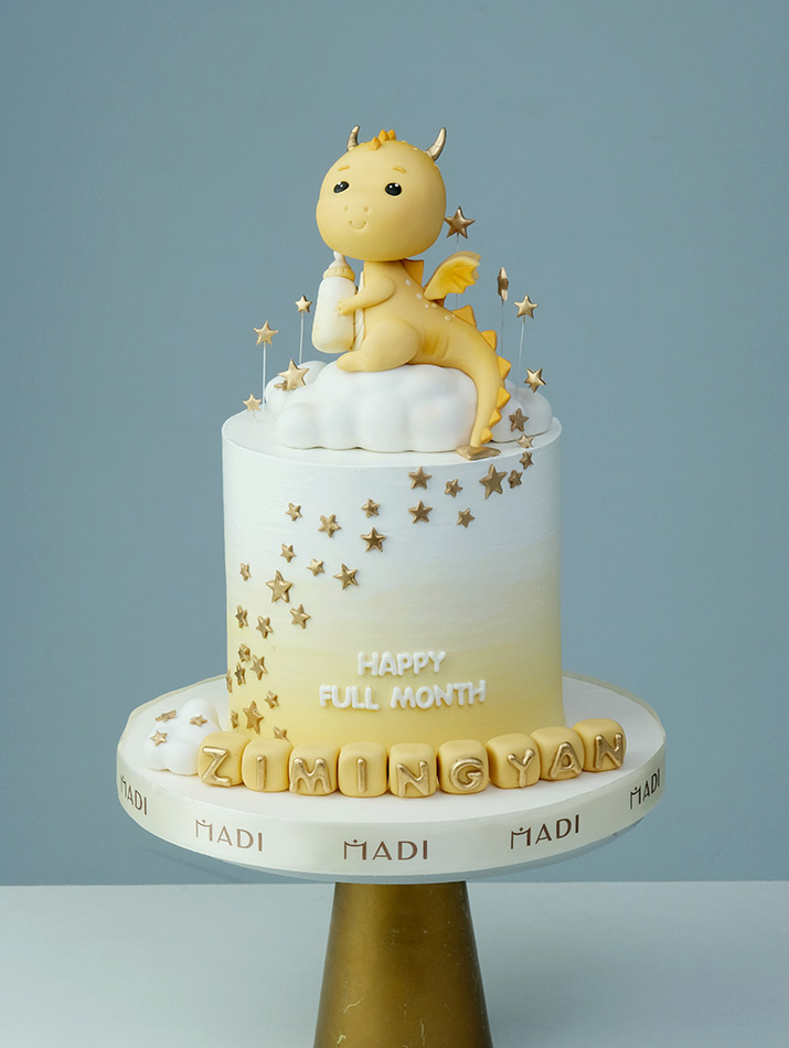 Designed for the baby, the artisans have created a dragon with high innocent features and gentle clouds. The conversion of the harmony of the cake is the galaxy, which is adorned with vivid gold lights.