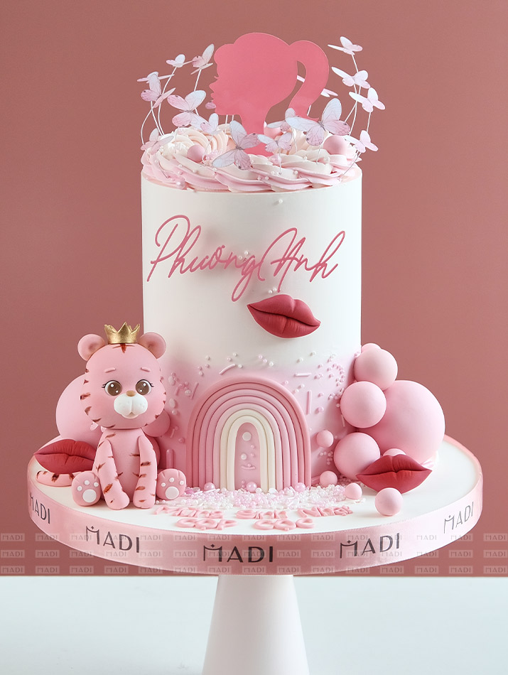 The pink tone cake with exquisite design for the muse.