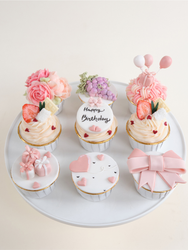 The sweet cupcake collection decorated by MaDi artisans is so adorable. The pink color of the flowers, gifts, and her heart is so gentle and lovely.