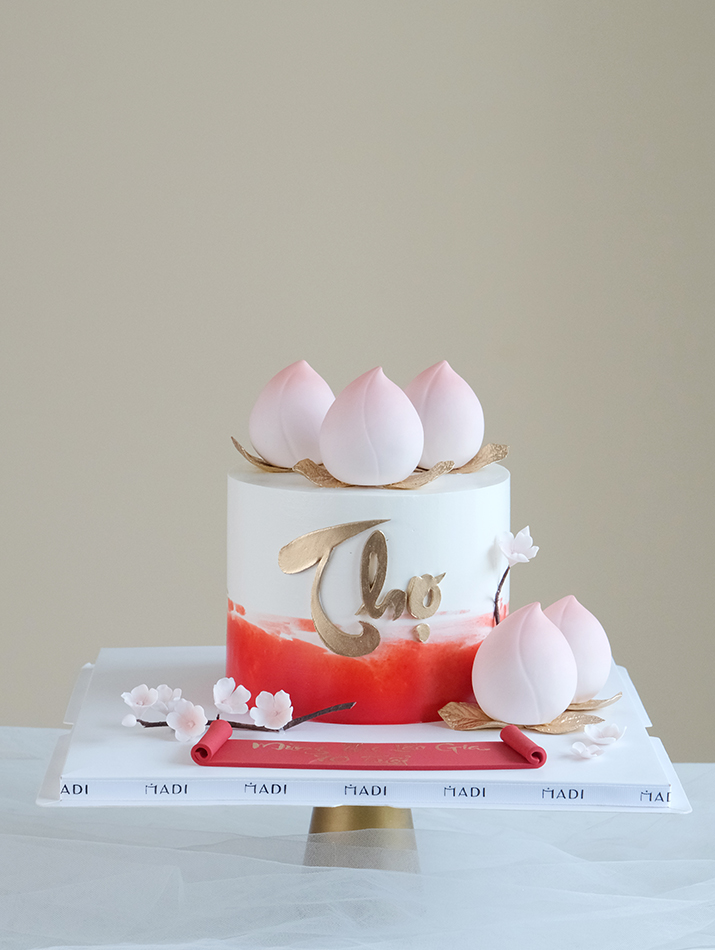 Birthday celebration cake shaped like a lotus bud. This is a special cake, symbolizing the longevity and elegance of the lotus flower - a symbol of nobility and purity