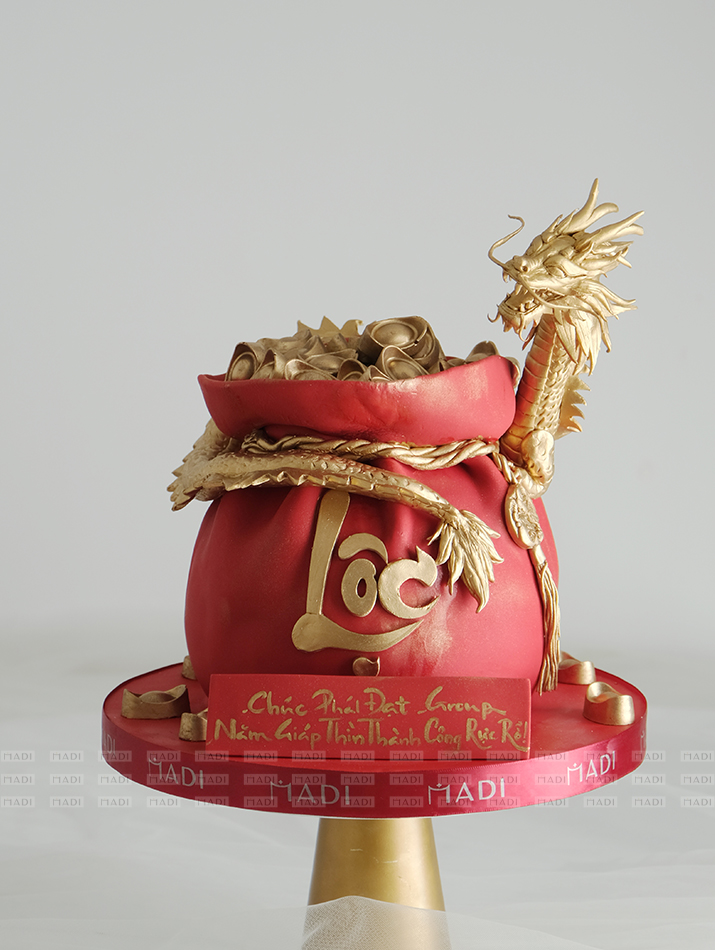 This cake is more than just a unique work of art. But also a symbol of prosperity and success. With the image of a strong and powerful dragon next to the bag of money. The cake shines like a mysterious fire, promising to bring you a new year full of opportunities and prosperity.