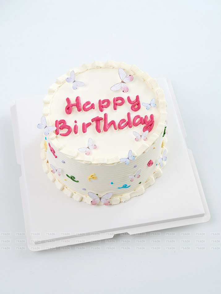 Simple cream cake with smooth white cream and unique hand -drawn motifs, this cake exudes a minimalist but impressive style at Madi.