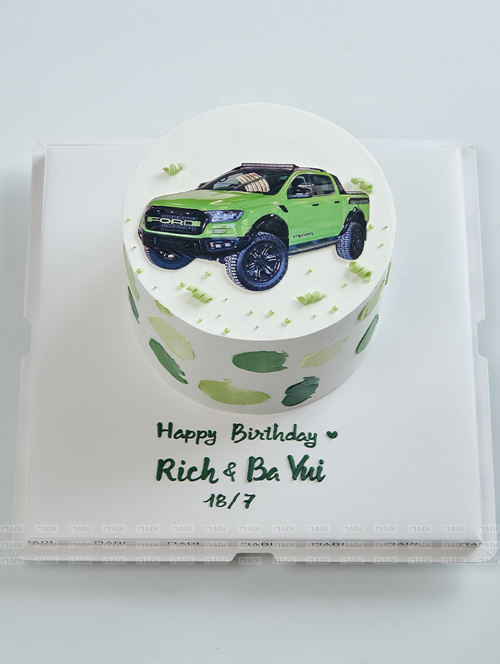 The cute blue car -shaped cream cake carrying lovely bears is on the way to explore the world. The white clouds and brilliant rainbows, promising to bring children beautiful dreams.