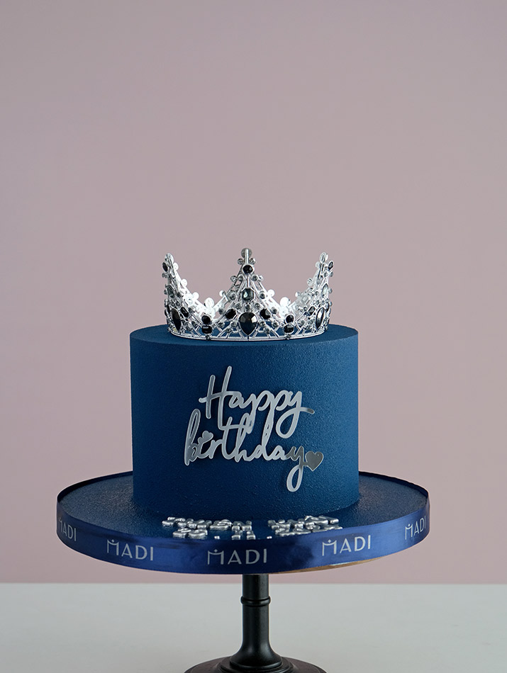 Birthday cake for women with a minimalist but attractive design. The elegant dark green cake is highlighted by a gorgeous golden crown on the top, bringing a noble and classy beauty at Madi