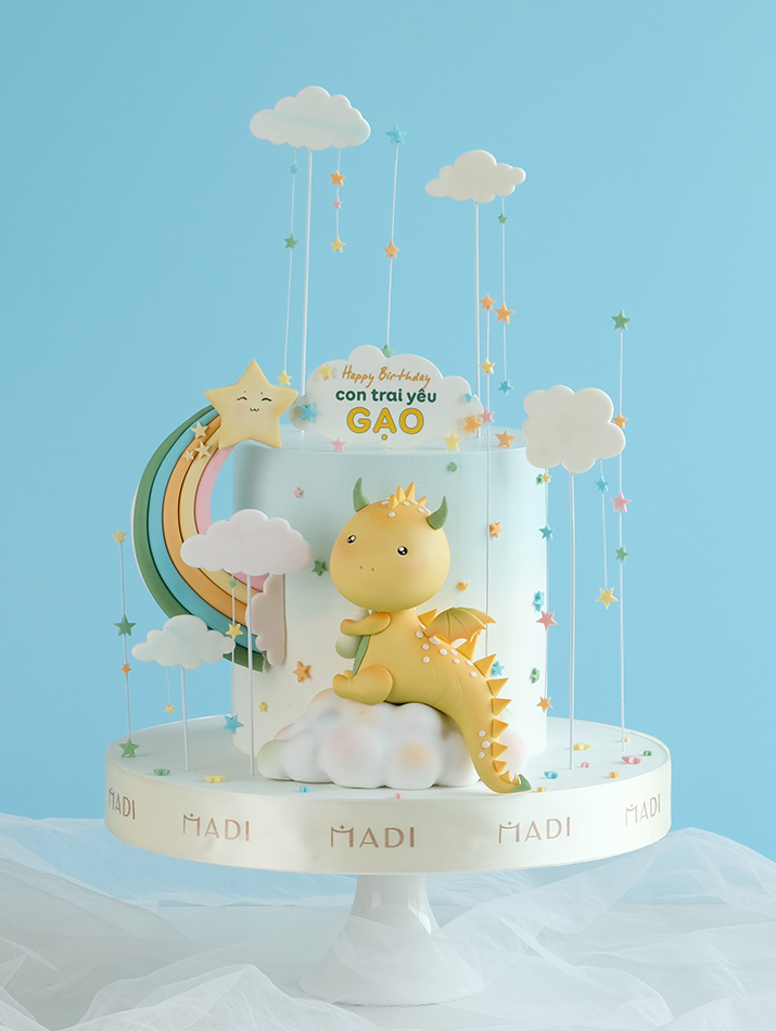 Nhân dịp chiếc bánh kem hình chú rồng đầu tiên trong ngày thôi nôi Tiệm Bánh MaDi cùng bố mẹ chúc cho các con mau lớn nhanh khám phá thế giới diệu kỳ này con nhé. Một người tuyệt vời sẽ có một cuộc sống tuyệt vời và con sẽ được như thế. Chúc mừng con yêu tròn 1 tuổi.