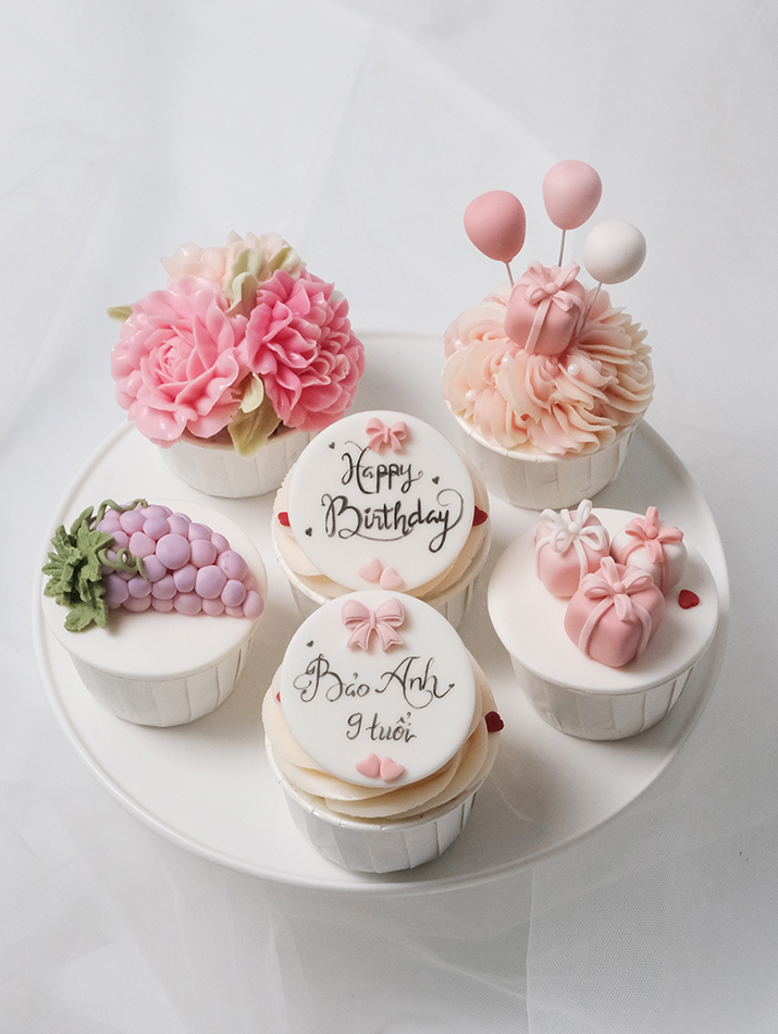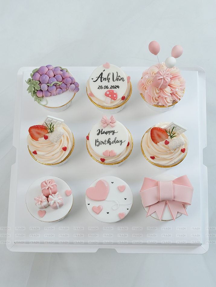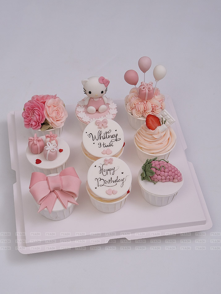 Bộ sưu tập cupcake ngọt ngào được nghệ nhân nhà MaDi trang trí thật dễ thương. Màu hồng của những cánh hoa, màu hồng của những món quà, và màu hồng của trái tim em, thật dịu dàng và đáng yêu.