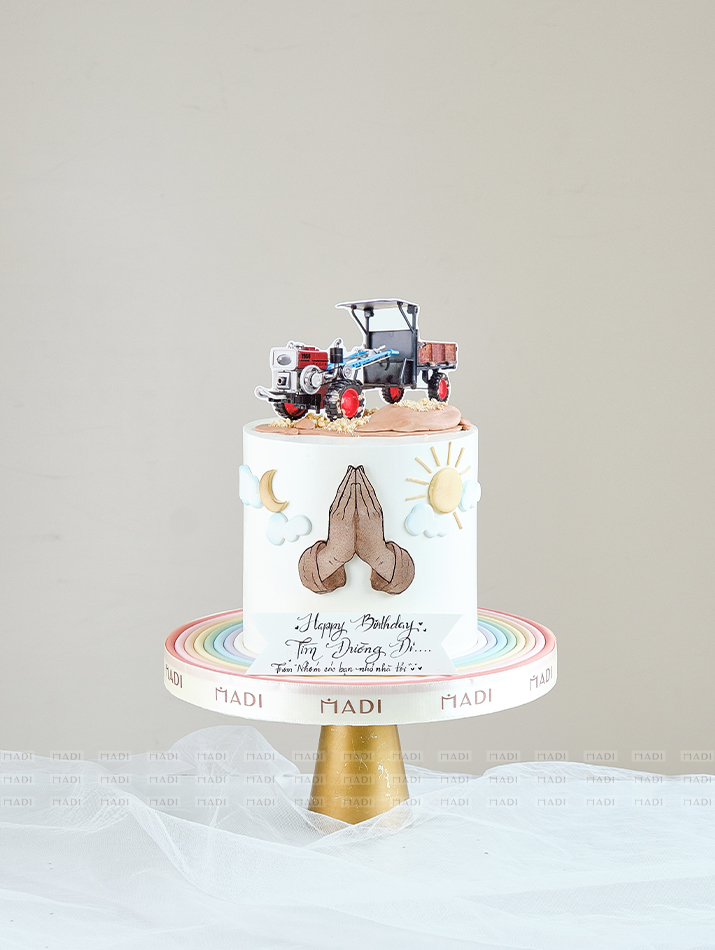 Hoa Sen là một biểu tượng thiêng liêng trong Phật giáo, biểu tượng của một tâm hồn thuần khiết. Người nghệ nhân nhà MaDi đã khéo léo tạo nên một chiếc bánh kem hình chậu bông sen bằng fondant. Bông sen hồng, nhụy vàng nổi bật trên nền lá xanh, bên ngoài chậu là hình đôi bàn tay đang chắp lạy, cầu nguyện. Một chiếc bánh thiêng liêng, mang ý nghĩa tinh thần to lớn dành tặng cho Đức Ngài Pema Norbu Yangsi Rinpoche nhân dịp sinh nhật Ngài.