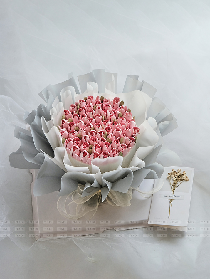 Gửi đến người thương yêu của bạn một món quà ngọt ngào và đầy ý nghĩa! Chiếc bánh kem được tạo hình hoa tulip hồng với bao nhiêu tình cảm chân thành và yêu thương từ trái tim người tặng.