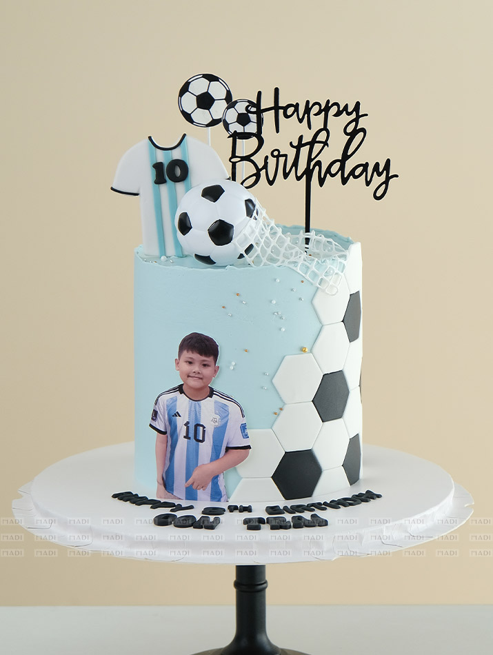 Bóng đá, môn thể thao vua, luôn có một sức hút đặc biệt đối với các anh và các bé. Hiểu được niềm đam mê đó, Tiệm Bánh MaDi đã cùng ba mẹ tạo ra chiếc bánh kem bóng đá cực kỳ ấn tượng và đáng yêu. Chiếc bánh là món quà sinh nhật của ba mẹ dành cho cậu bé, được nghệ nhân nhà MaDi thiết kế đẹp mắt và ấn tượng.